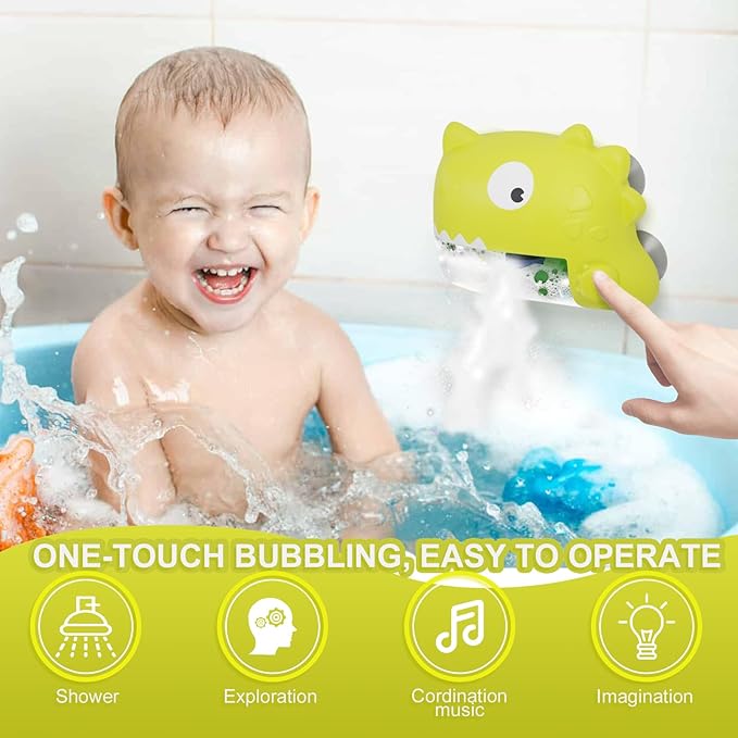 🦖 Exciting Theme for Dino Lovers: This bubble machine features a fun dinosaur design that will delight young dinosaur enthusiasts, making bath time an exciting adventure that they look forward to!
